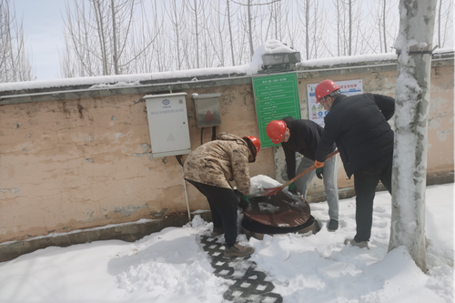 降雪初停,章丘公司立即啟動應急預案,各部門迅速響應,一場與冰雪的“戰(zhàn)斗”全面打響。在清理過程中,工作人員特別注重對供水設施設備周邊積雪的清理。為防止積雪融化滲入供水井造成故障,員工將設備周圍的積雪徹底清除,并對設備進行了仔細檢查,確保其在低溫環(huán)境下正常運行。