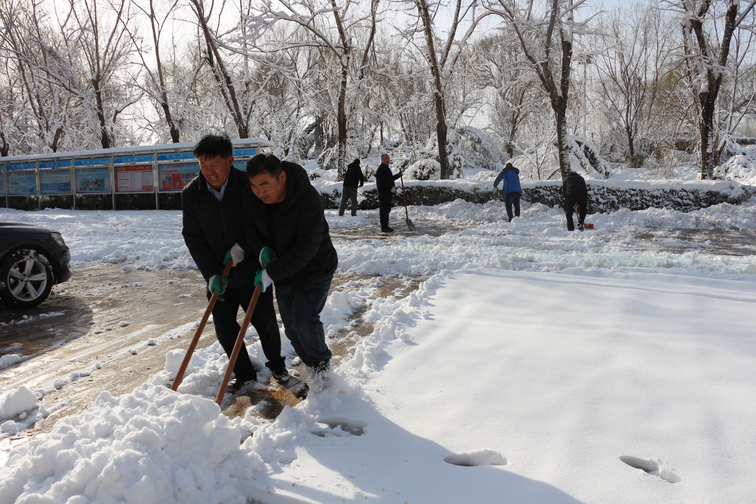 在鄒平眾興廠區(qū),黨員干部帶頭手持推雪鏟、鐵鏟等清雪除冰設備,向大面積的雪面“進攻”,將通往辦公樓、化驗樓、食堂等路面作為重點清理區(qū)域。經(jīng)過2個多小時的協(xié)力奮戰(zhàn),路面基本清理干凈,為生產(chǎn)運行和員工安全出行提供有利保障。